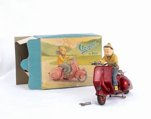 cm.18 Giocattolo in latta litografata, moto modello CYCLON come litografato sul serbatoio della benzina, completo [..]