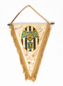 sintetico, cm.27x19 1985 Gagliardetto della Juventus F.C. del 1985 con firme autografe dei calciatori , ad inchiostro [..]