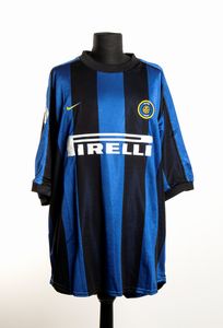 jersey 1999 Maglia bianca a maniche corte INTER 1908 con patch tonda a sinistra senza stella, sponsor PIRELLI [..]