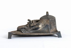 metallo 1910s Calamaio in lamiera d'ottone cromata (probabilmente nichelata), con ambientazione automobilistica [..]