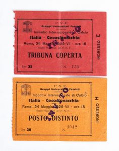 carta 1929 Lotto di due biglietti INVITO (usati) per l'incontro di calcio internazionale ITALIA-CECOSLOVACCHIA [..]