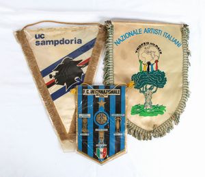 1970s Lotto di tre gagliardetti anni '70-'80, in materiale sintetico, stampati, della NAZIONALE ARTISTI ITALIANI [..]