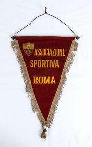 cotone 1970s Gagliardetto della AS ROMA (Associazione Sportiva Roma, ASR) in feltro rosso pompeiano e frangia [..]