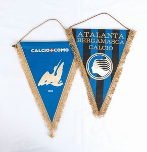 sintetico, cm.35 Lotto di due gagliardetti del CALCIO COMO 1907 (marcato AI.MA Torino MITA) ed ATALANTA BERGAMASCA [..]