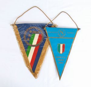 sintetica, cm.30, cm39 1978-79 Lotto di due gagliardetti in materiale sintetico stampati, SS CALCIO NAPOLI SETTORE [..]
