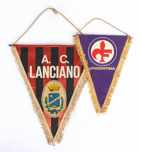 sintetico, cm.30-40 1980s Lotto di due gagliardetti stampati, A.C. LANCIANO (marcato Tutto Sport Via Morgagni [..]