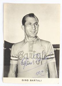 carta 1952 Foto cartolina di Gino Bartali, pubblicitaria del nastro per manubri GASLO, con autografo originale [..]