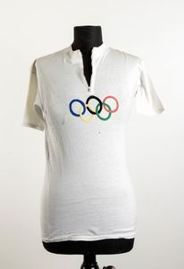 cotone 1960 Maglia bianca con simbolo olimpico dei cinque cerchi iridati appartenuta al campione Sante Gaiardoni, [..]