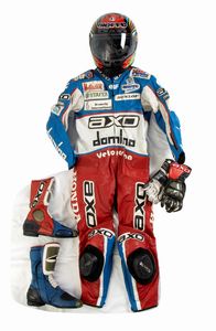 Motociclismo, Loris Capirossi , tuta da gara e casco autografati