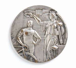 bronzo argentato 1930s Medaglia a modulo della FEDERAZIONE CICLISTICA ITALIANA periodo fascista, con fasci littori. [..]