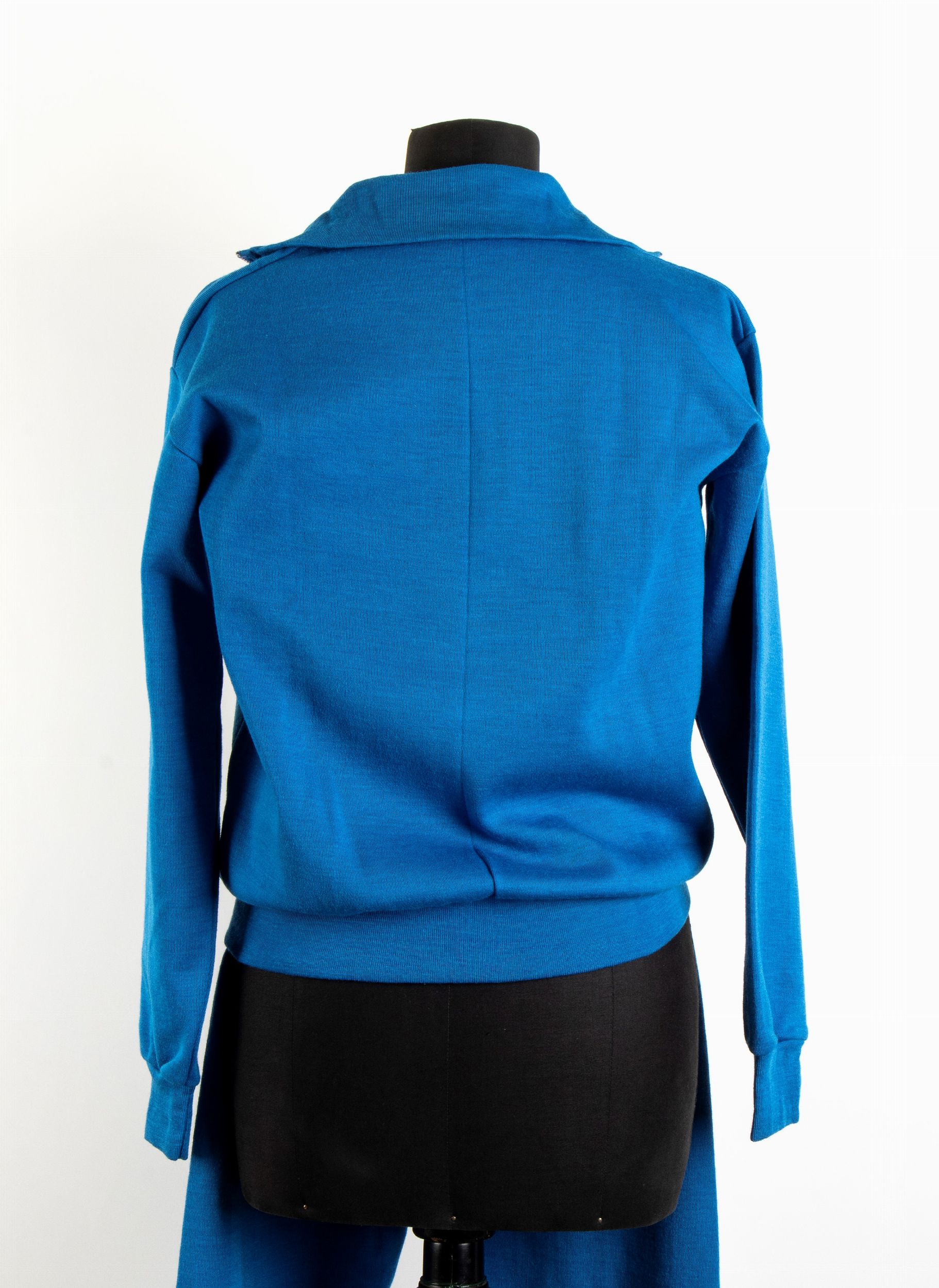1961 Tuta della nazionale italiana di calcio, appartenuta a Rino Marchesi, 1961-62, completa di giubbino e pantaloni. In cotone, scritta ITALIA in materiale sintetico con lettere cucite singolarmente, etichetta interna con numero di taglia 50, pantaloni con zip alla caviglia. In ottime condizioni. Fornita di certificato di autentica firmato da Marchesi