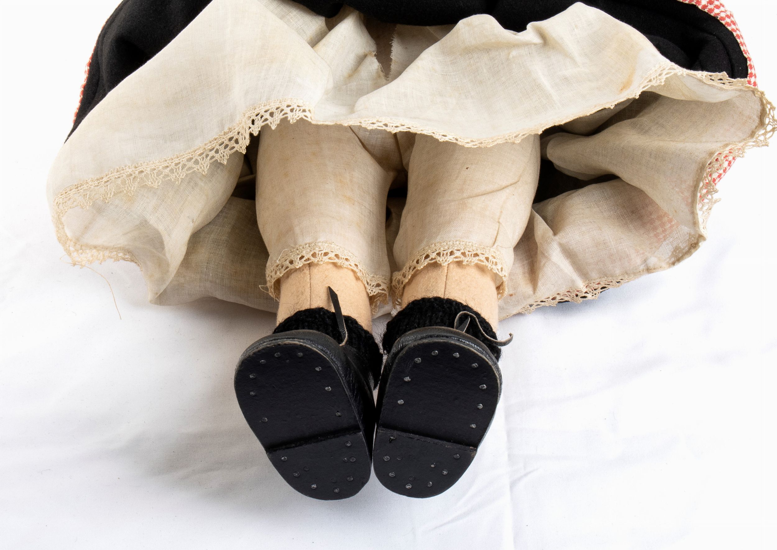 feltro, cm.48 1930s Bambola originale LENCI della serie 300. Bambina dagli occhi azzurri, vestita in costume regionale di PRAGELATO (Torino). Abbigliamento completo dalle sottovesti al foulard, con medaglietta al collo. Targhette originali Lenci ancora cucite al vestito. Viso da pulire, in buone condizioni. Originale degli anni '30