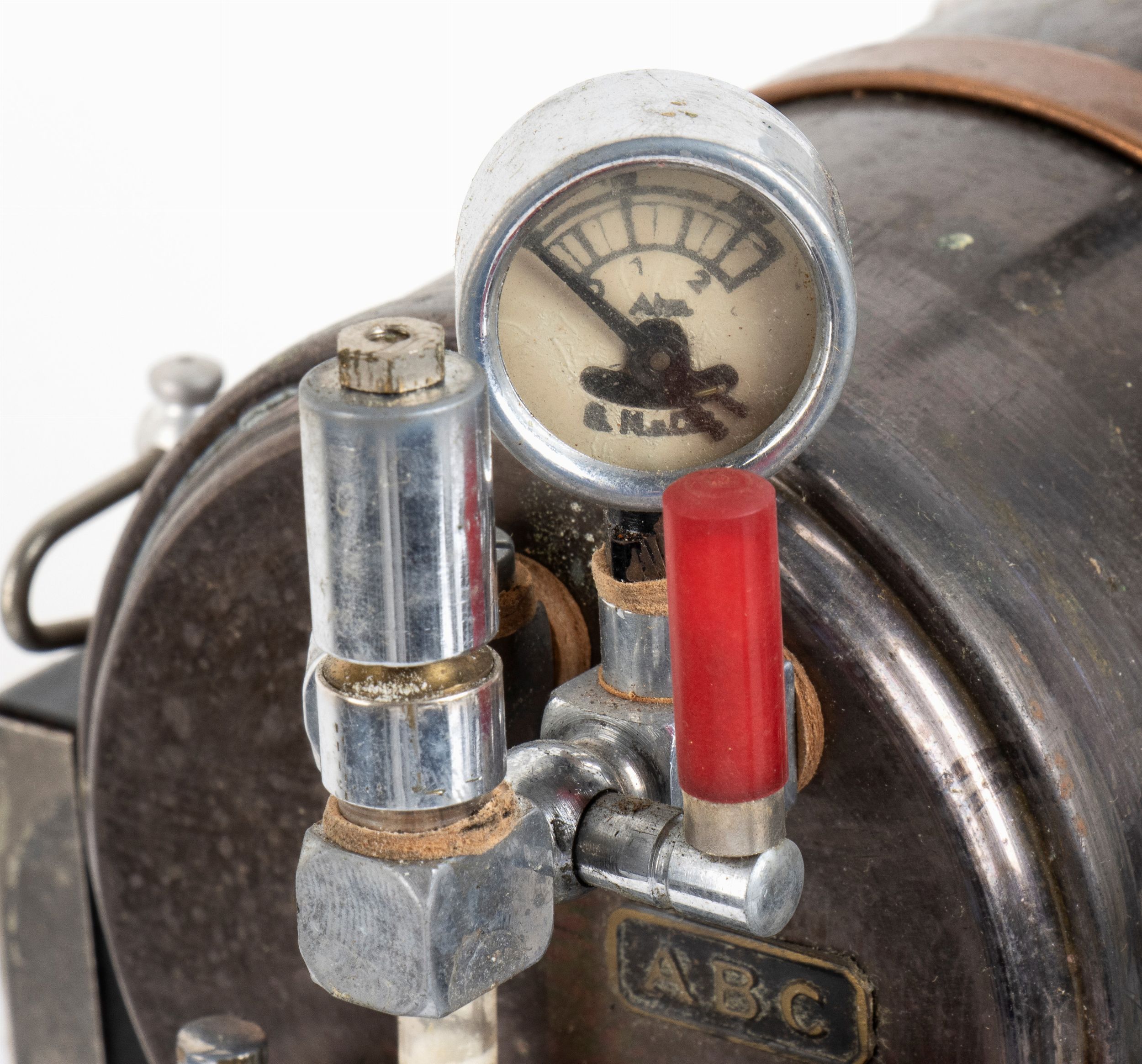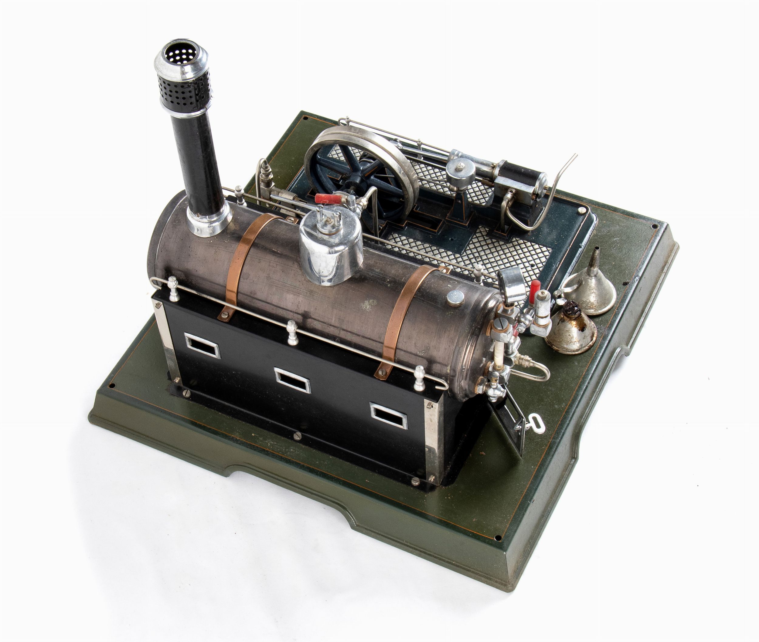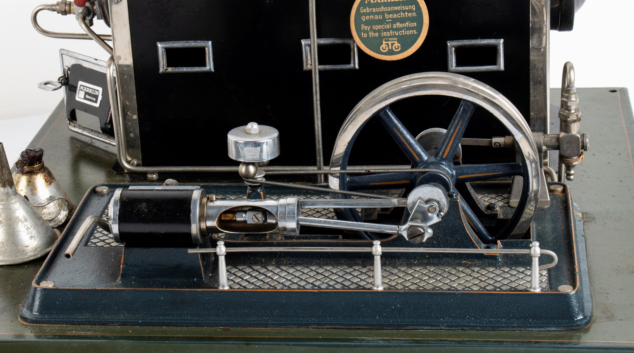 latta, cm.36x36 1920s Imponente macchina a vapore / fabbrica della MARKLIN , Germany, prodotta negli anni '20. Con targhetta circolare in cartoncino applicata che recita Gebrauchsanweisung genau beachten - Pay special attention to the instructions Completa di scatola originale in legno. In ottime condizioni