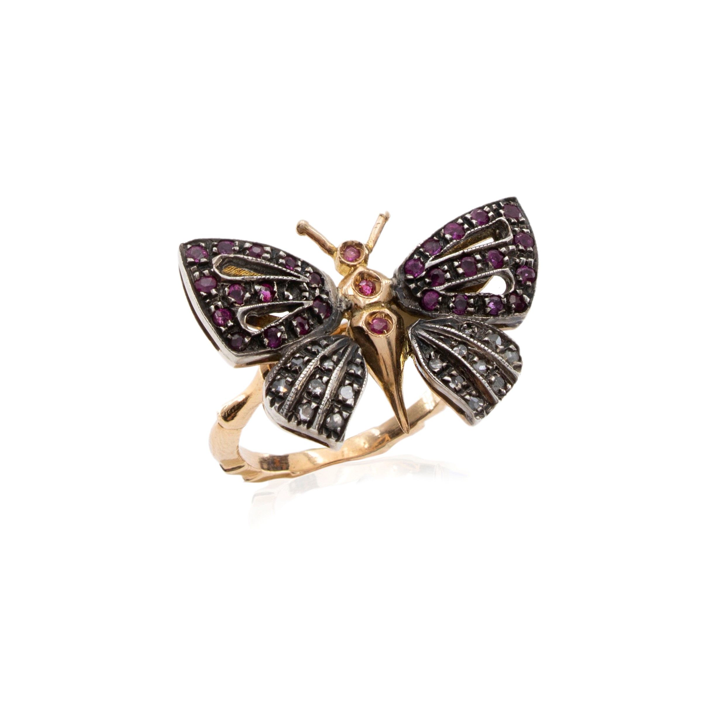 Anello farfalla in oro giallo 14kt e argento
