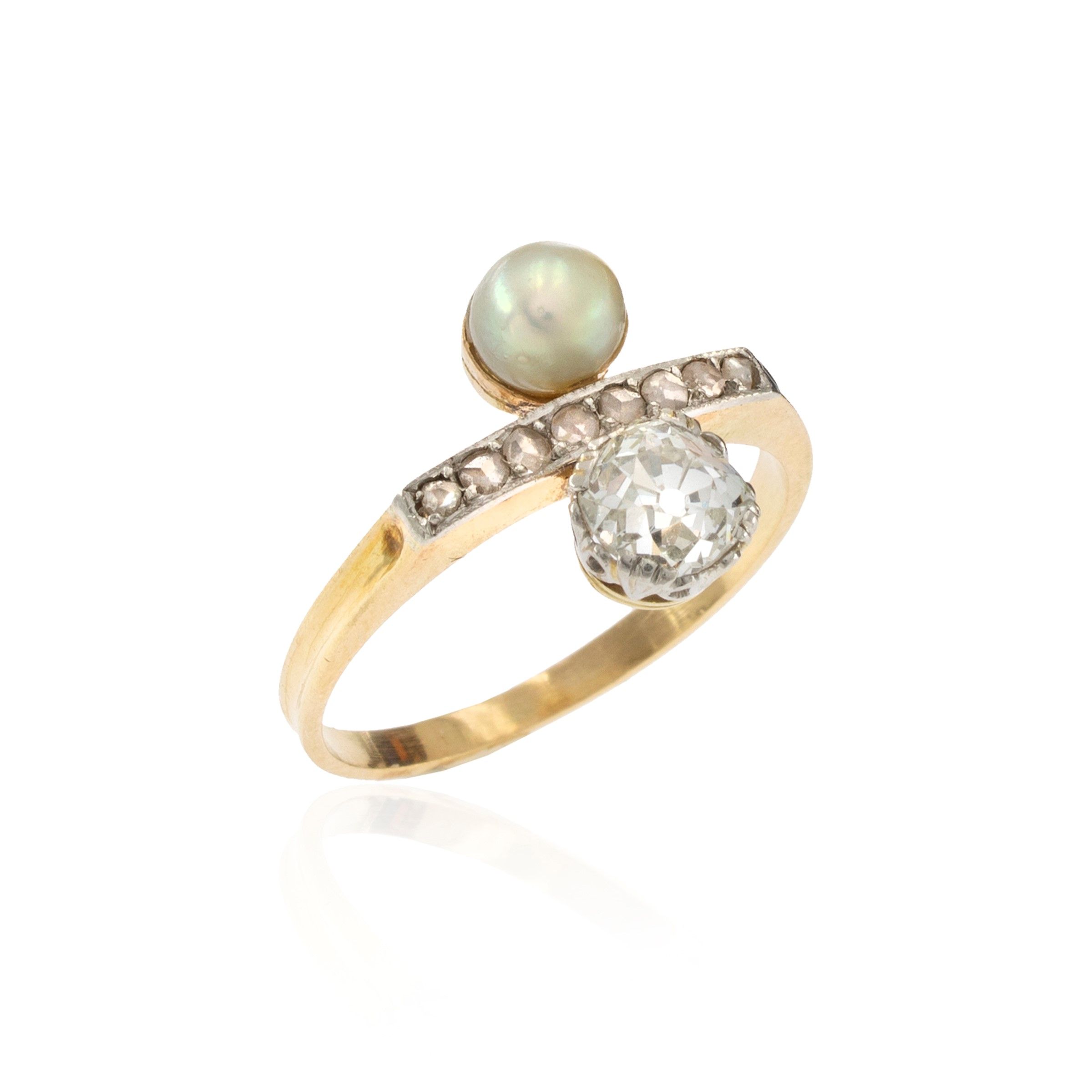 Antico anello in oro giallo 9 kt e argento