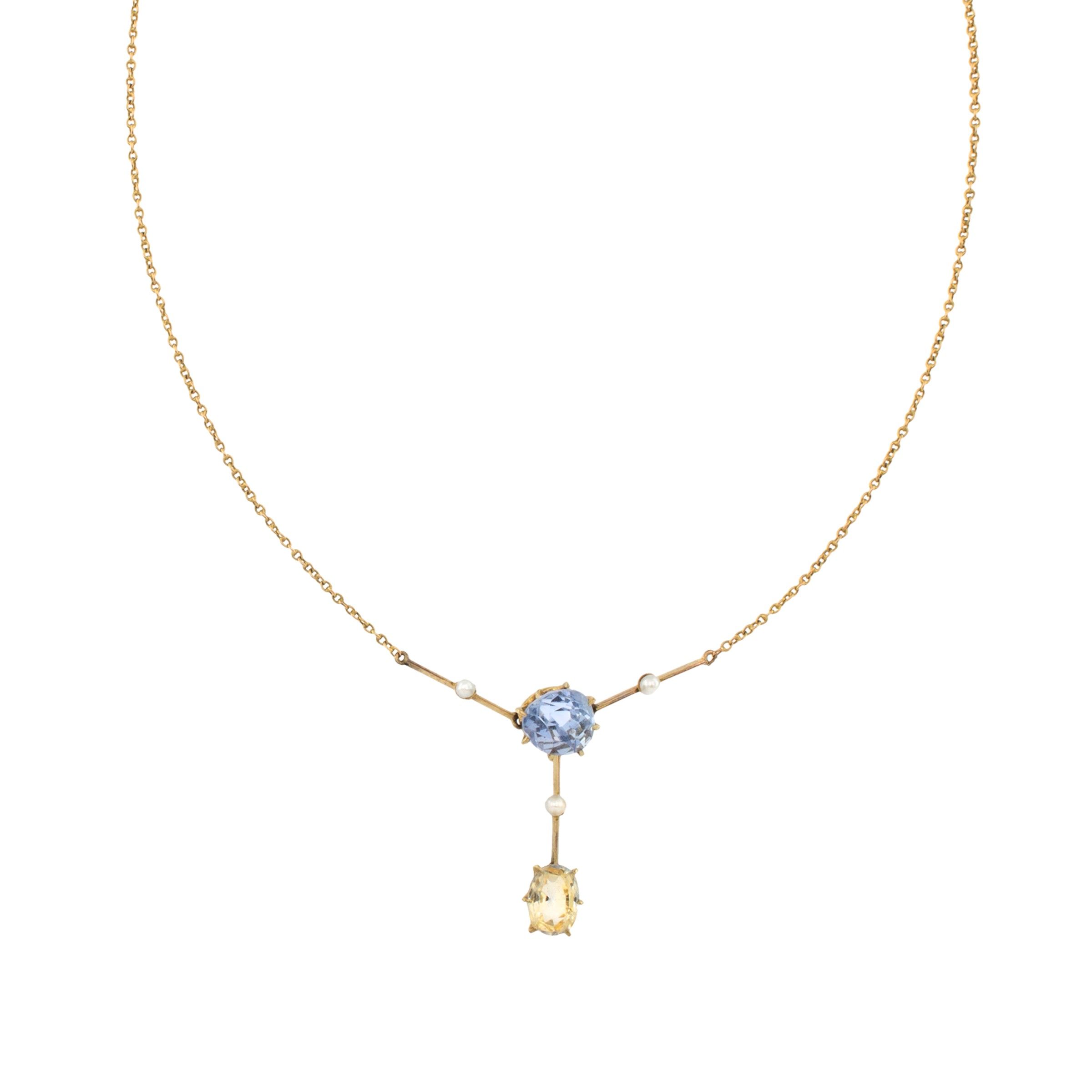 Antico pendente in oro giallo 18kt zaffiro blu e giallo
