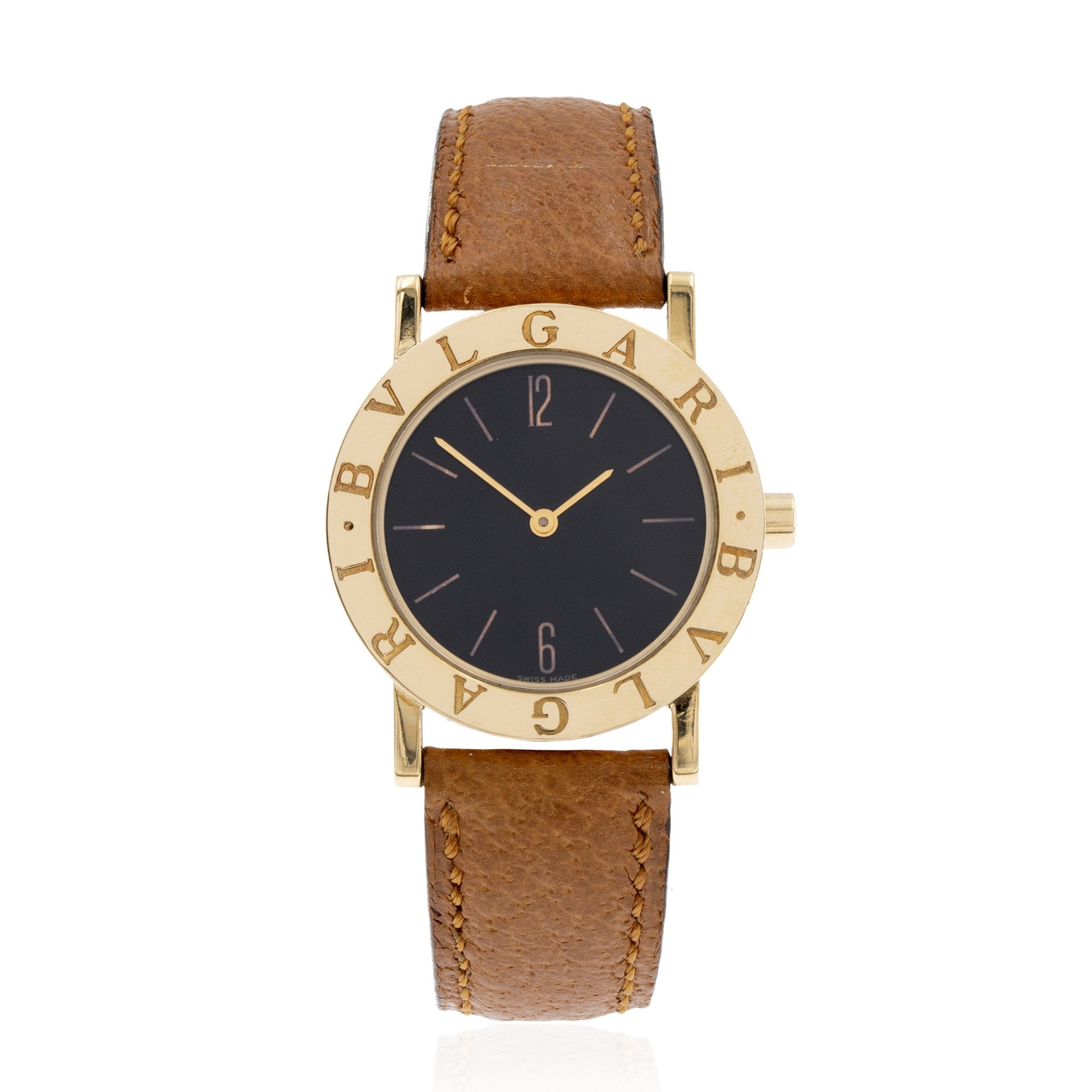 in oro giallo 18kt, ref. BB30GL - P61280, cassa tonda 30 mm. quadrante nero con indici e numeri arabi, vetro zaffiro, movimento al quarzo 732-84, cinturino in pelle con fibbia originale in oro giallo 18kt, cassa quadrante e movimento firmati, completo di scatola