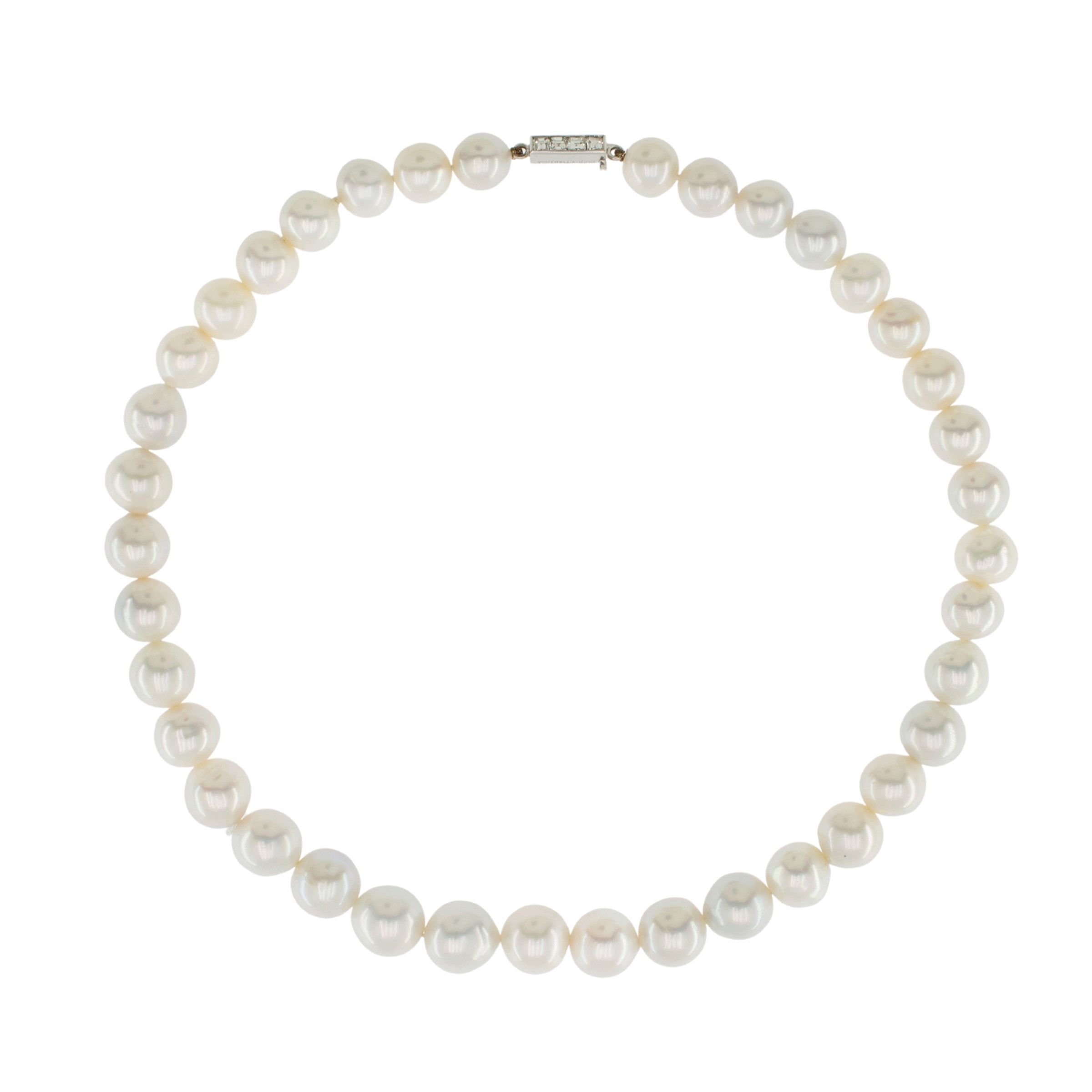 firmato Ventrella sfere da 10 a 13 mm. chiusura in oro bianco 18kt e diamanti taglio princess ct 0,40