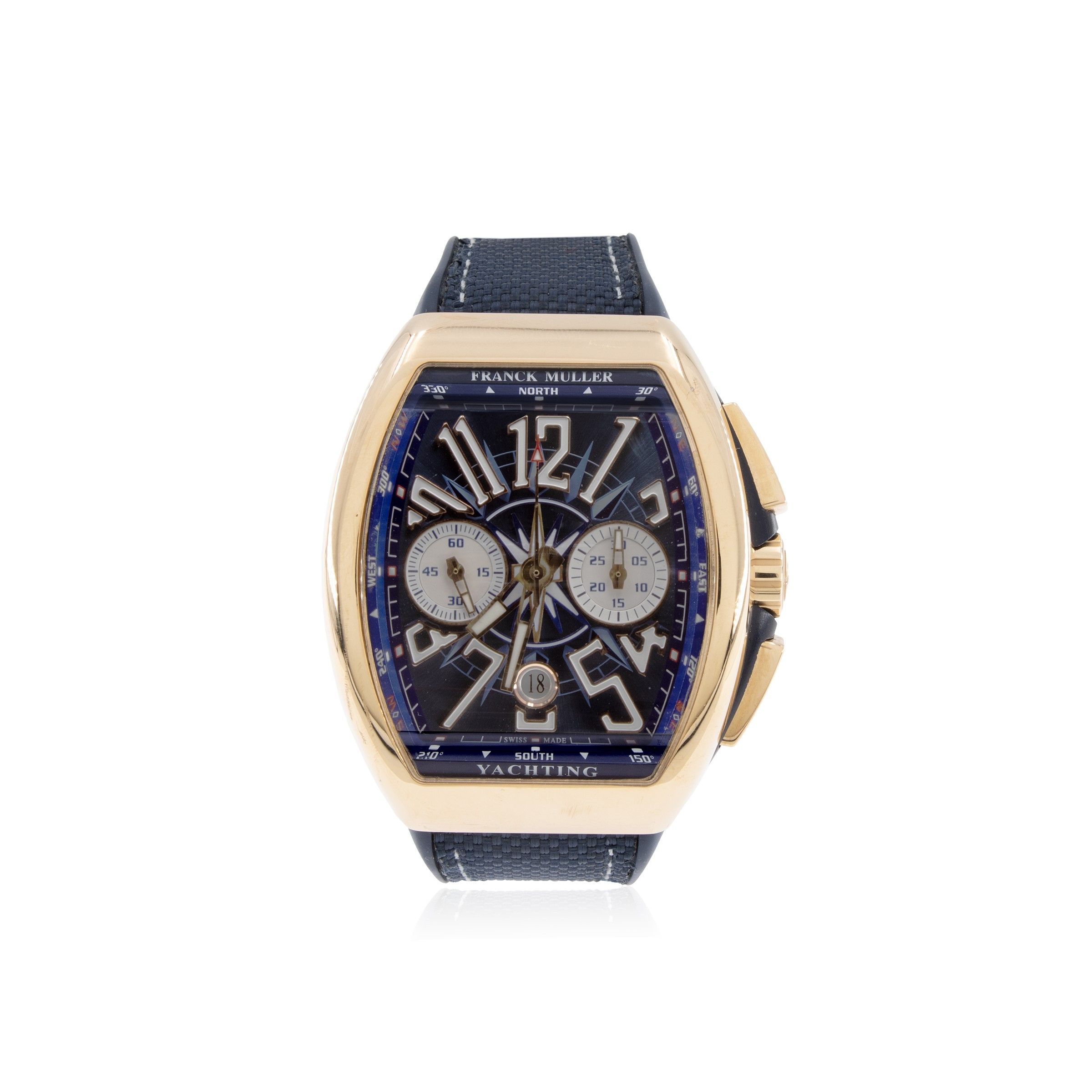 serie limitata 5NBL n. 386, anno 2019 bicompax in oro rosa 18kt, ref. V45CCDT, cassa 54x44 mm. quadrante blu e bianco con numeri romani, due quadranti ausiliari per il cronografo, datario ore 6, vetro zaffiro, movimento meccanico a caria automatica R 7750, chiavetta per ricarica rapida, cinturino originale in gomma con fibbia originale in oro giallo 18kt, cassa, quadrante e movimento firmati, completo di scatola e garanzia