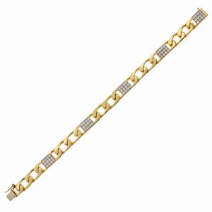 peso 161 gr. firmata, anni 70 circa in oro giallo 18kt alternata da quattro elementi geometrici in oro giallo [..]