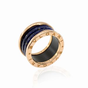 peso 7 gr. firmato in oro rosa 18kt a quattro fasce in lapislazzulo, misura 14, completo di scatola