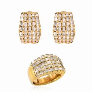 Parure in oro giallo 18kt e diamanti taglio baguette