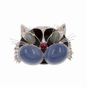 Spilla gatto in oro bianco 18kt
