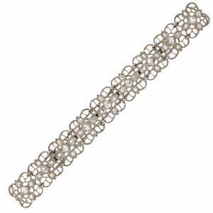 peso 4 gr. primi 900 taglio briolet rispettivamente ct 1,60 e 0,90 circa, alternati da perline, completo di catenina [..]