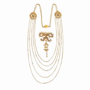 peso 14 gr. primi '900 lavorato a filigrana con perline, collana lunghezza 39 cm. - spilla dimensioni 5,2x3,3 [..]