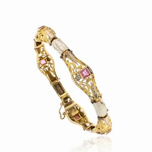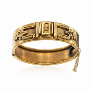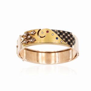 Antico bracciale a manetta in oro rosa e giallo 9kt