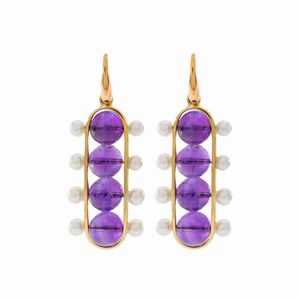 Antico pendente in oro giallo 18kt zaffiro blu e giallo