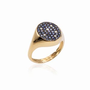peso 4 gr. zaffiri tondi ct 0,55 circa e diamanti taglio brillante, misura 13
