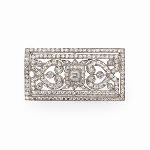 peso 7 gr. anni 40/50 taglio carré e brillante ct 1 circa, dimensioni 3,5x1,7 cm.