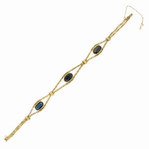 peso 4 gr. anni 40/50 zaffiro taglio ovale briolet ct 1,20 circa e diamante taglio vecchio ct 1 circa ai lati [..]