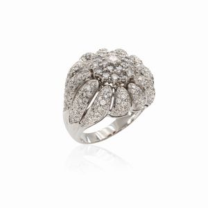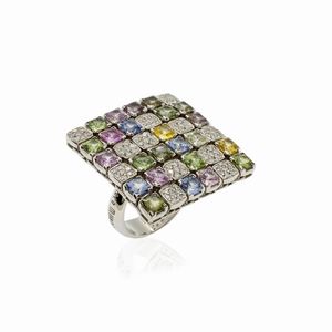 peso 11 gr. firmato Alberto Frandoni in oro bianco 18kt diamanti taglio brillante ct 1,40 circa e zaffiri tondi, [..]