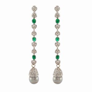 peso 27 gr. cuori con incastonati diamanti taglio brillante ct 2,20 circa alternati da smeraldi taglio cabochon, [..]