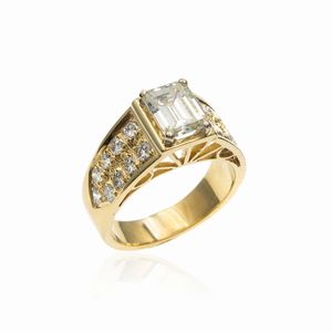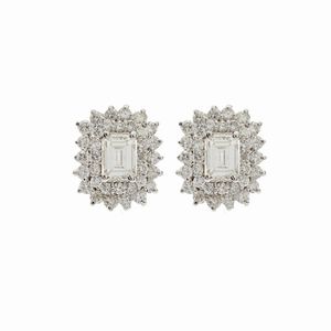 peso 3 gr. due diamanti taglio ottagonale a gradini ct 0,95 circa contornati da diamanti taglio brillante ct 1,20 [..]