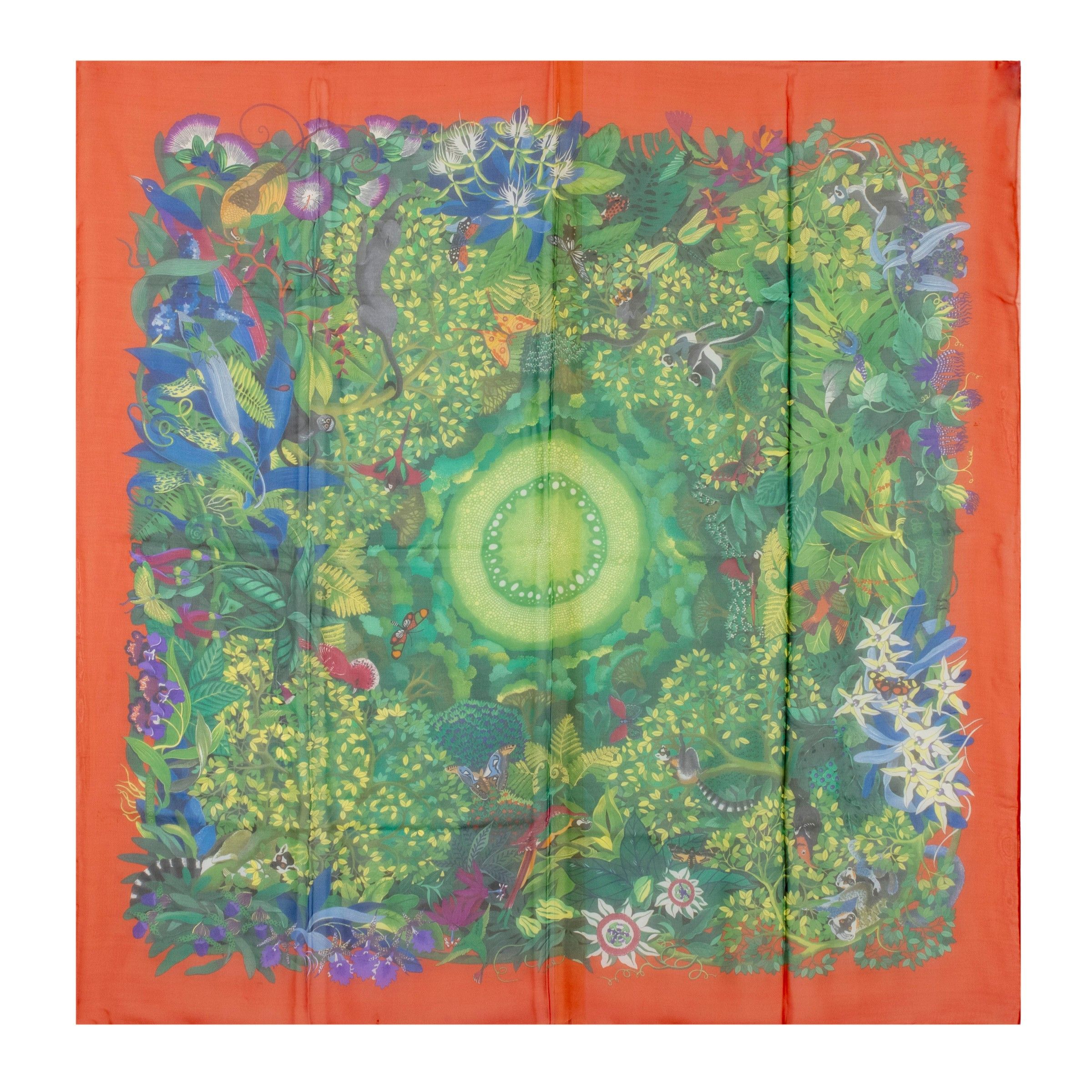 in voile di seta nei toni del verde, giallo, rosso e viola