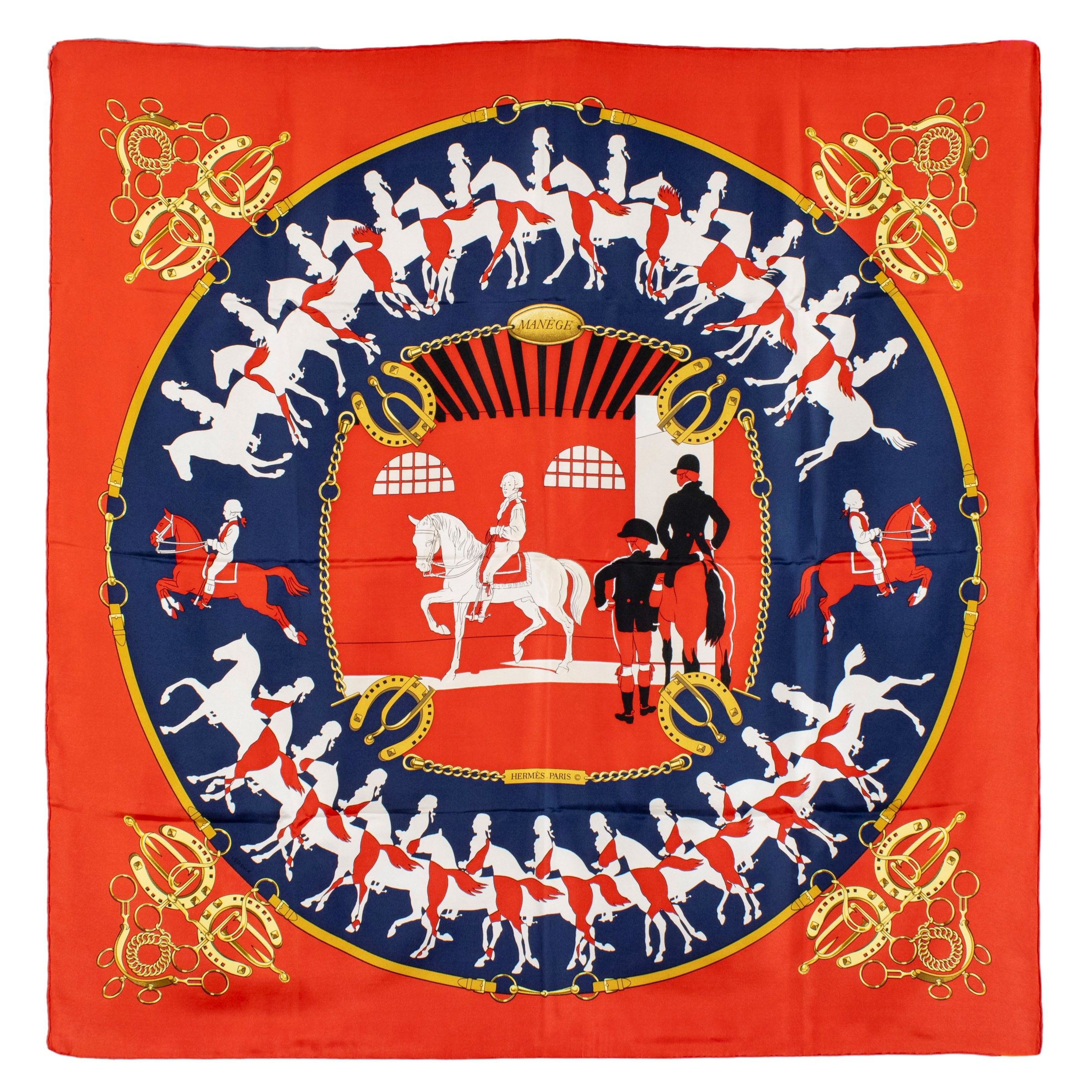 in seta nei toni del rosso, blu, bianco e giallo oro, completo di scatola