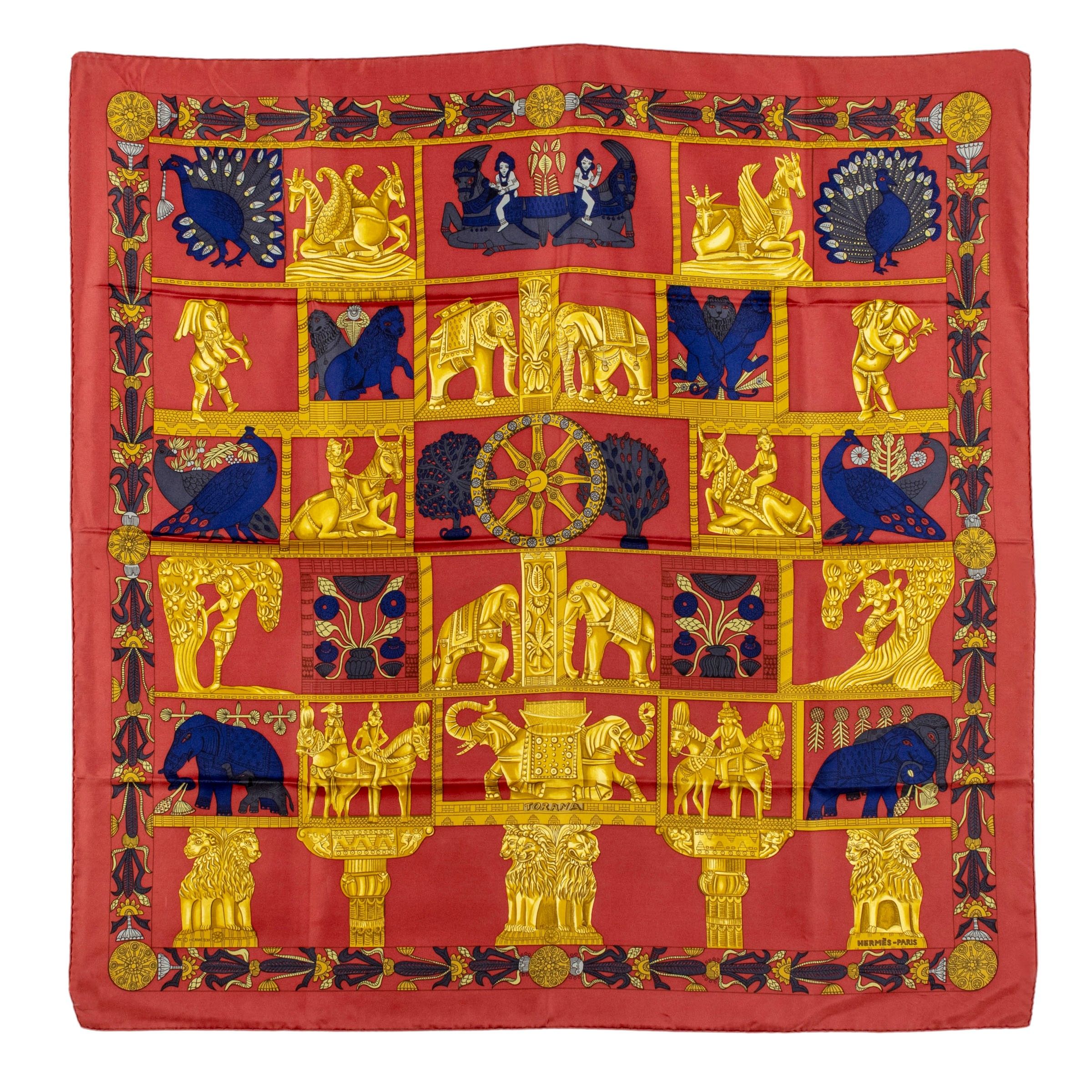 in seta nei toni del bordeaux, blu e giallo oro, completo di scatola