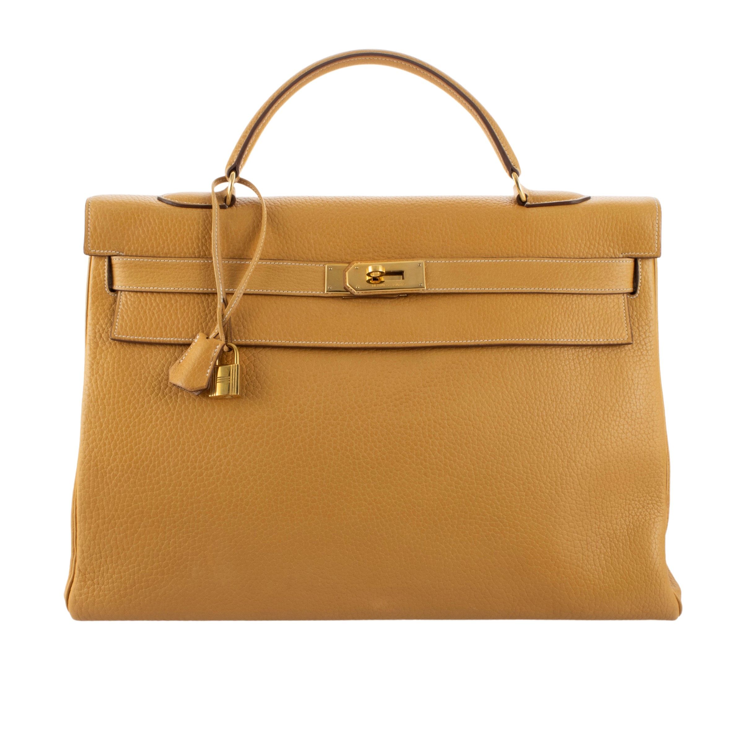 anno 1983 in pelle togo giallo sole, finiture dorate, interno in pelle ad uno scomparto con due tasche di cui una a zip, manico in pelle, chiusura a lucchetto con chiavi, completa di dust bag