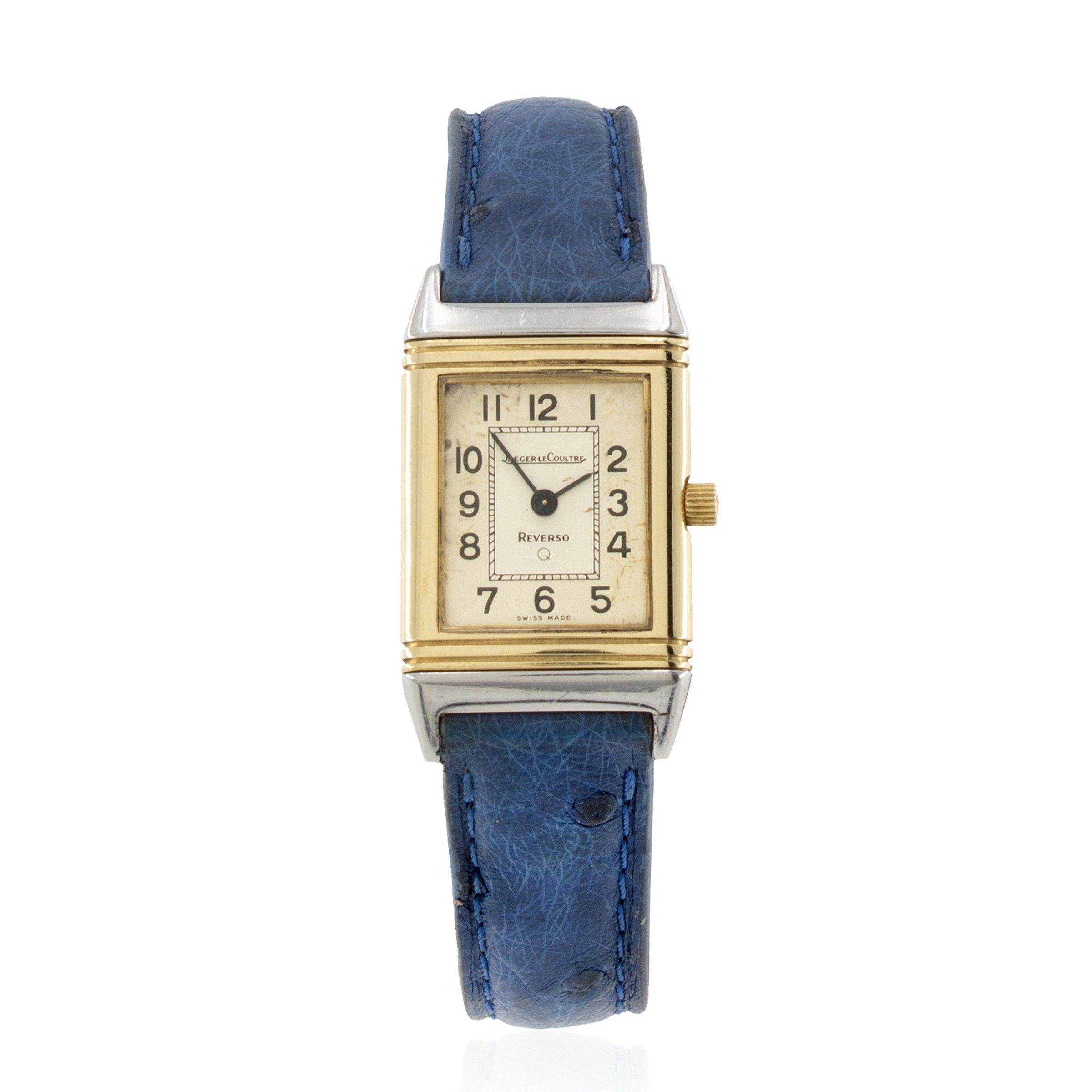 anni 80 circa in oro giallo 18kt e acciaio, ref. 1400255 - 1596717, cassa 33x19 mm. quadrante duodial con numeri arabi, segni di usura, vetro zaffiro, movimento al quarzo, cinturino in pelle con fibbia in metallo, cassa, quadrante e movimento firmati