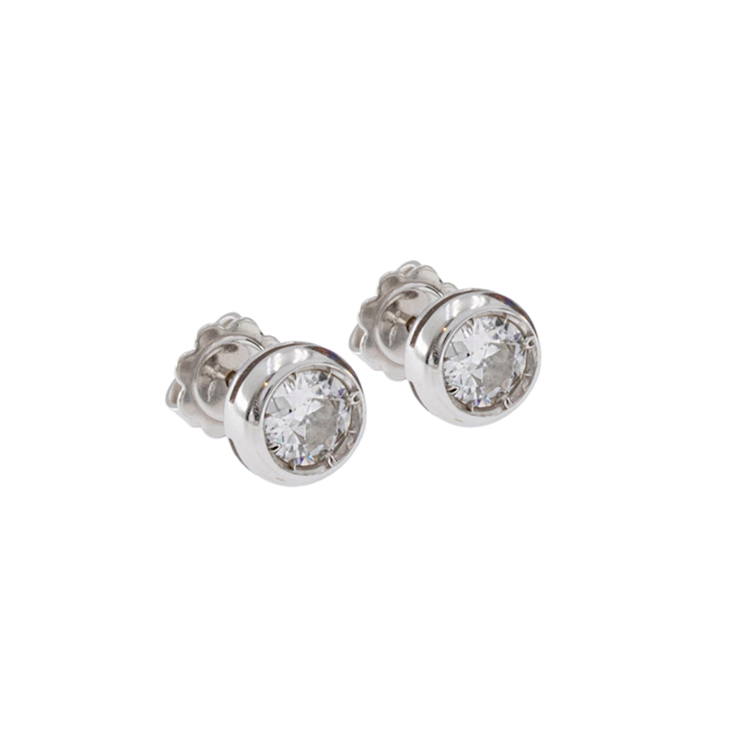 Orecchini a lobo in oro bianco 18kt con due diamanti