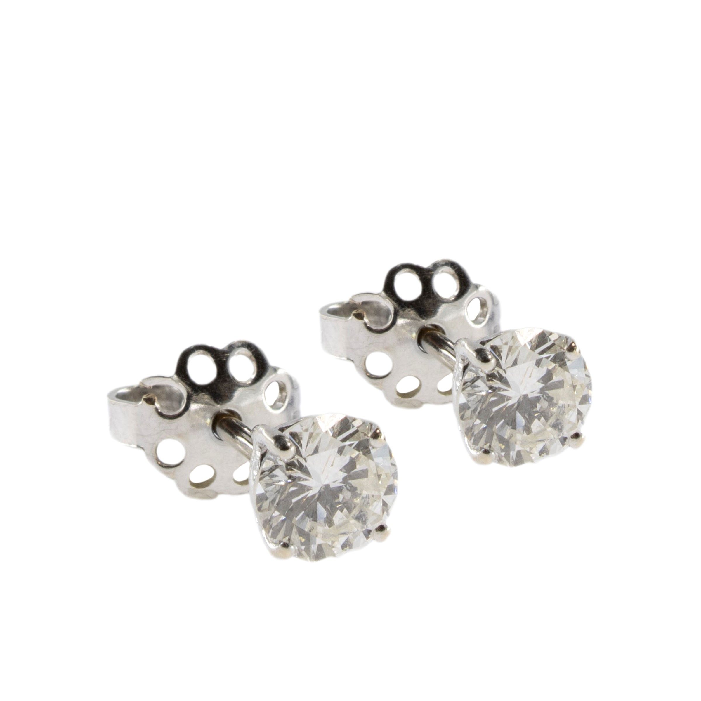 Orecchini a lobo in oro bianco 18kt con due diamanti