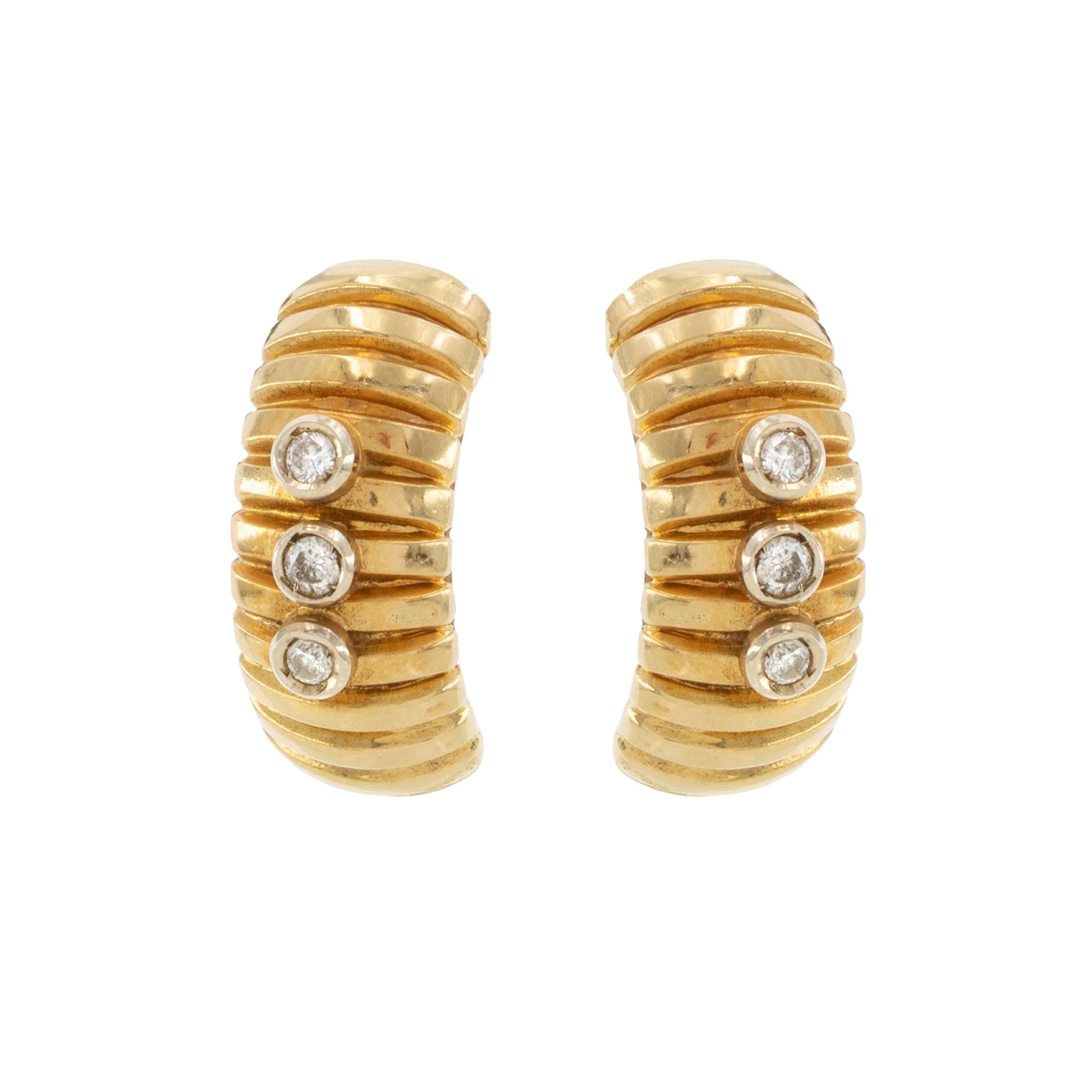 Orecchini a lobo in oro giallo e bianco 18kt e diamanti