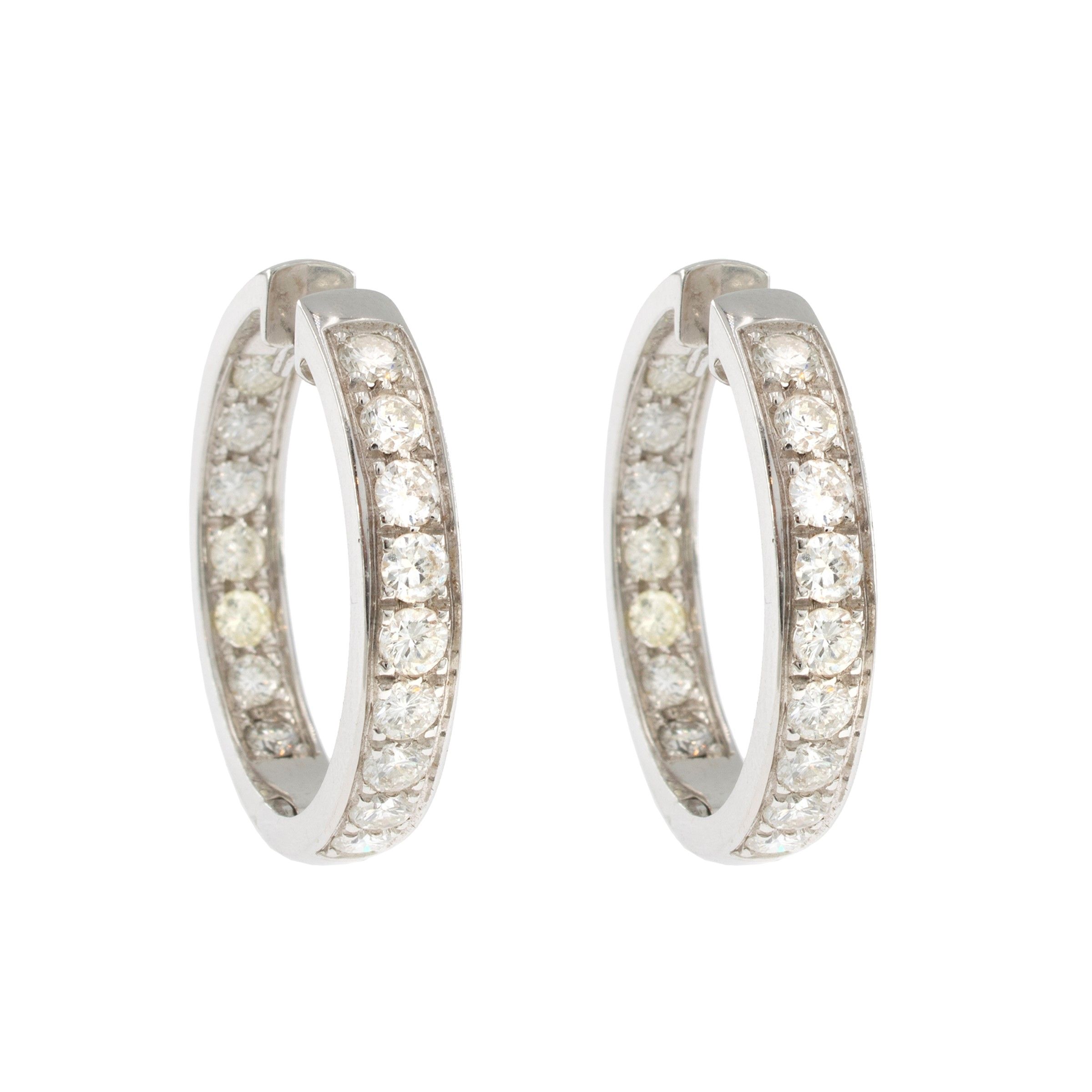 Orecchini cerchi in oro bianco 18kt e diamanti