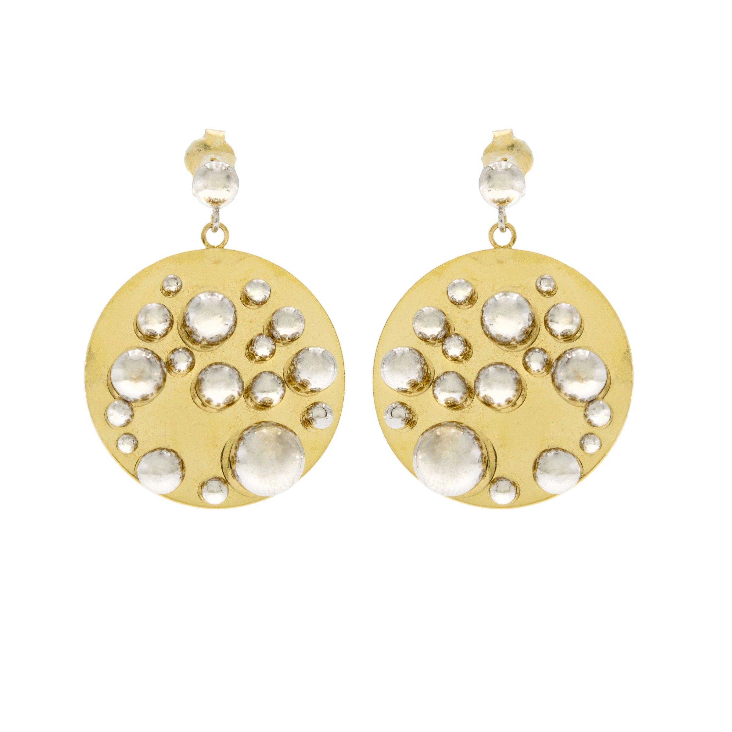 firmato, edizione limitata n. 8/8 in oro giallo 18kt e sfere en tremblant in oro bianco, dimensioni 3,5x3,3 cm.