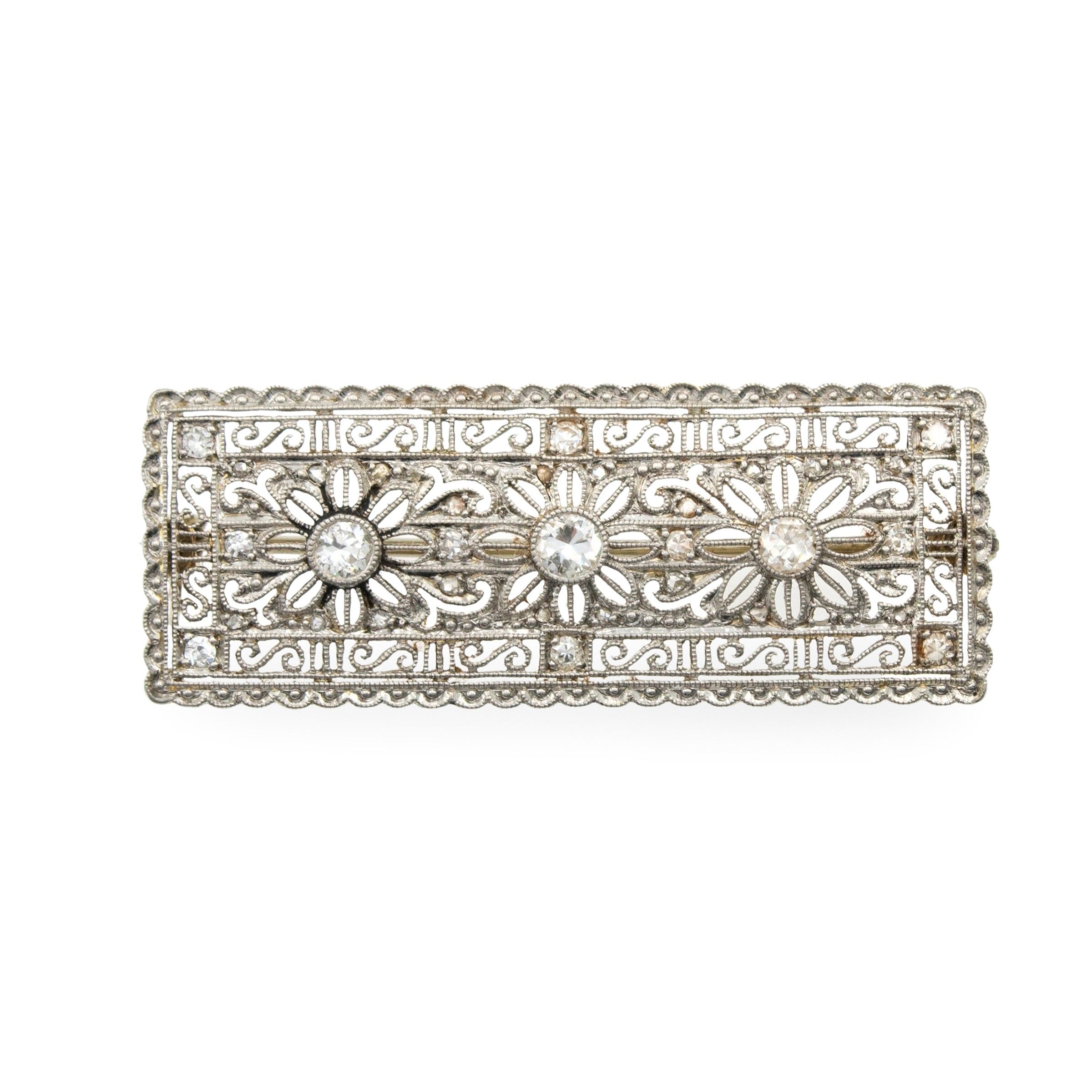 Spilla rettangolare in oro a due colori 18kt e diamanti