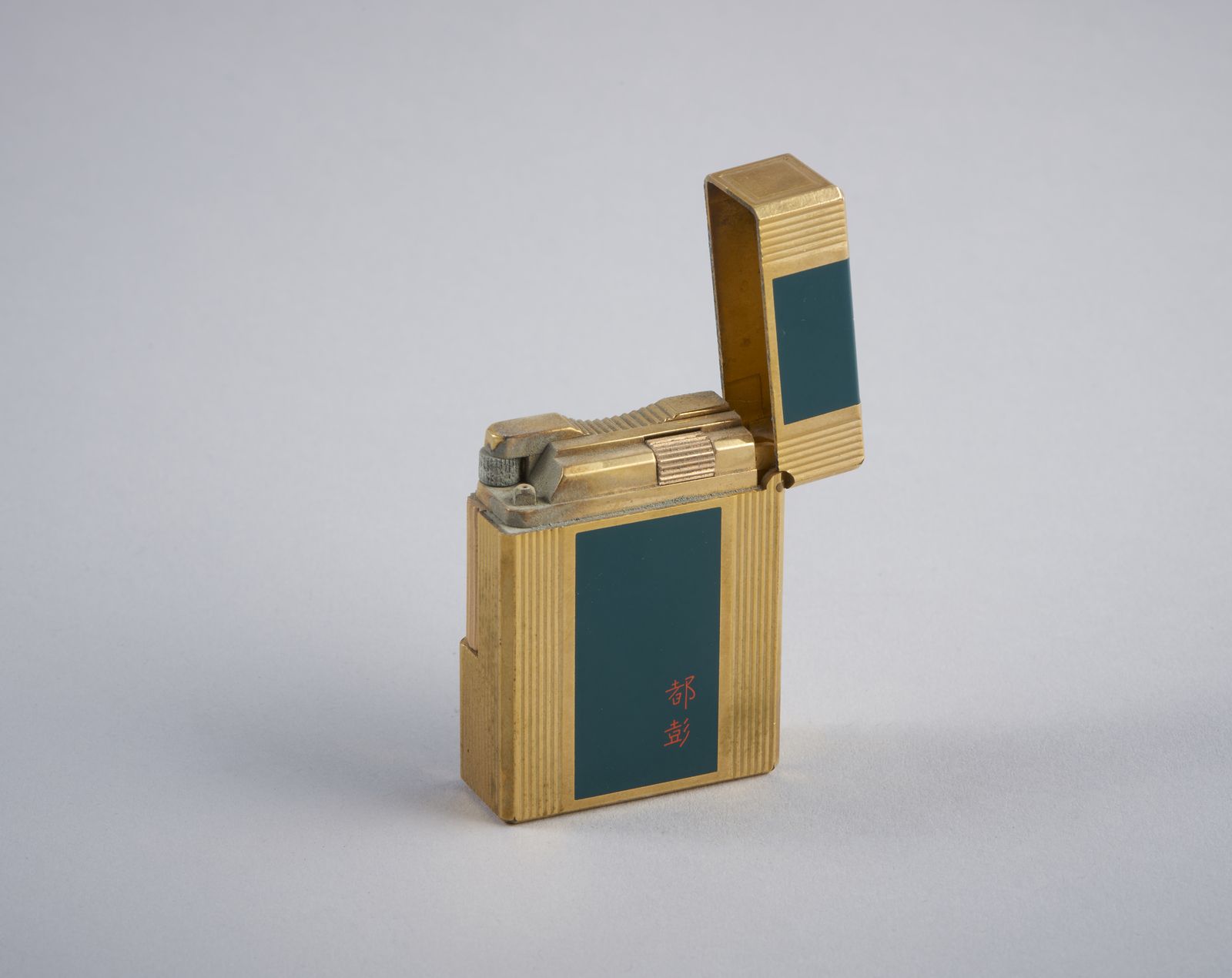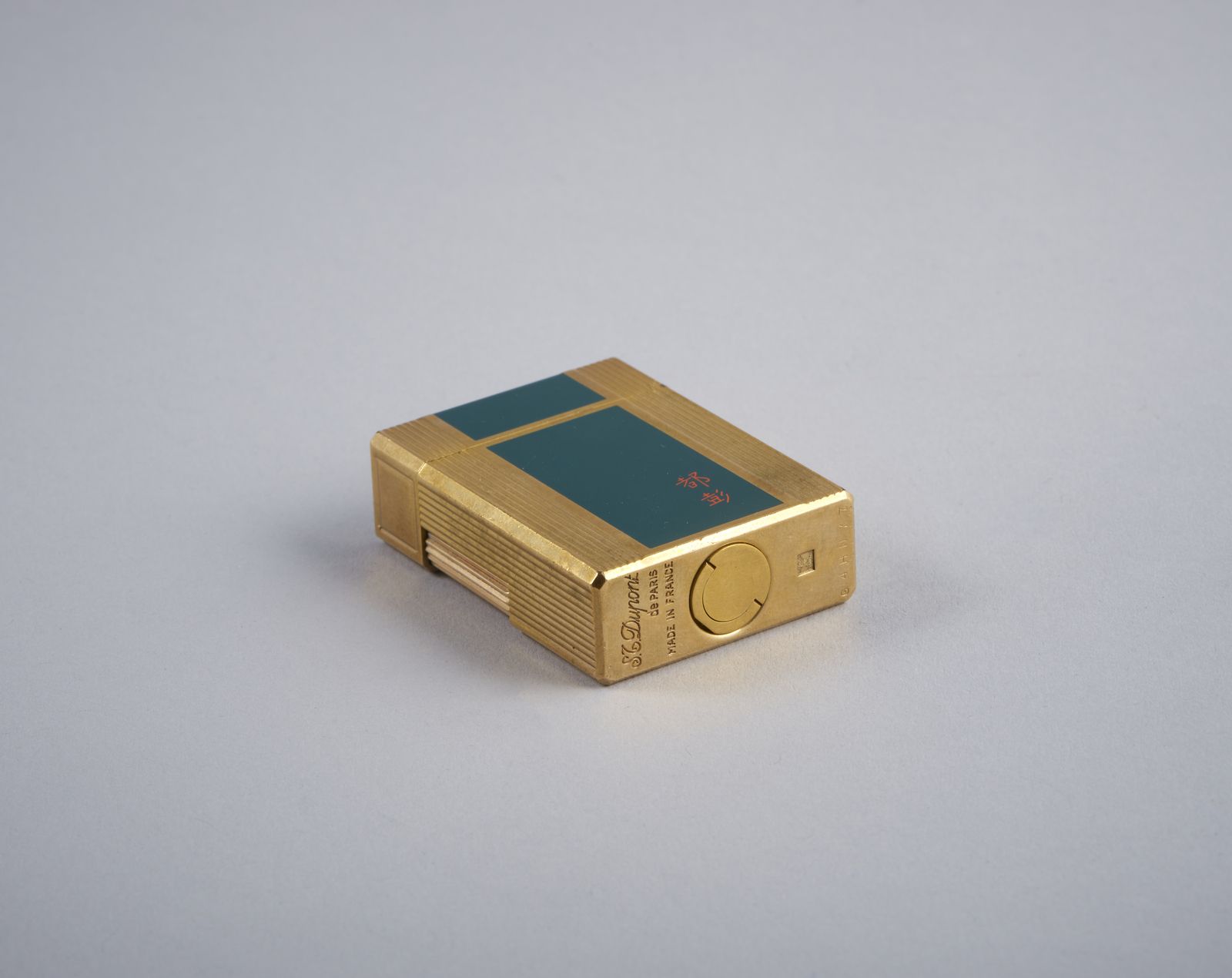 Accendino Dupont placcato oro con laccatura verde.