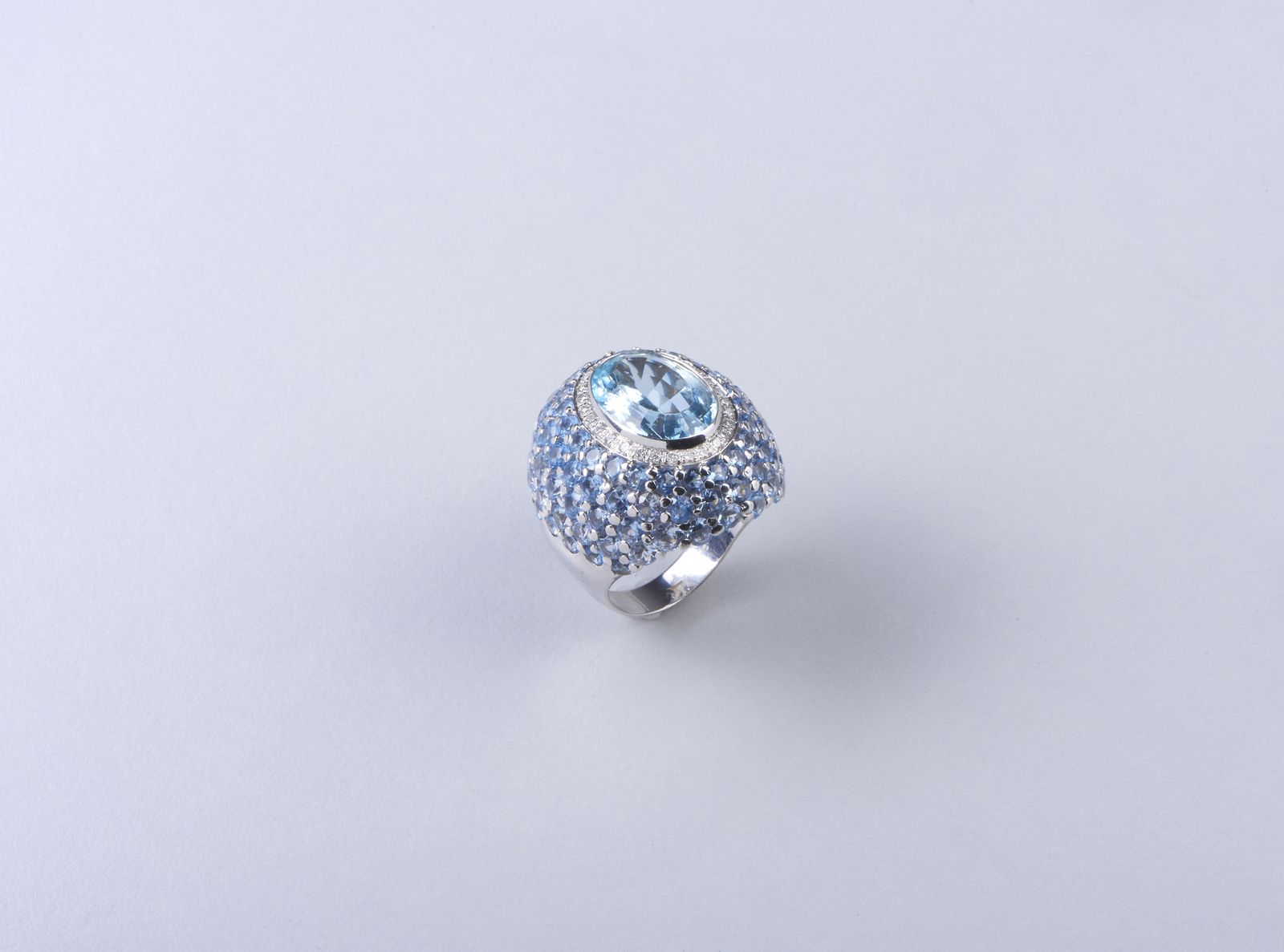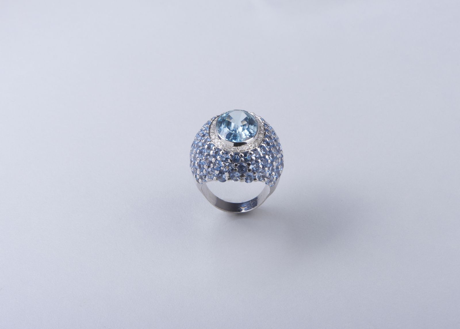 Anello in oro bianco 18k con acquamarina centrale da 11,50 ct. e contorno di brillanti [..]